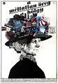 In the 1960’s, Görög played an important role in the resurgence of the movie poster. He used a wide range of techniques: paper cut, delicate and fine drawing, oil painting, ‘burned’ (strongly contrasted) photos, montage and colour photographs as well. One of Görög’s most famous works is a very unique and elegant design for the Fellini movie “8 and ½”. He also produced a notable poster for “Rocco and his Brothers”.