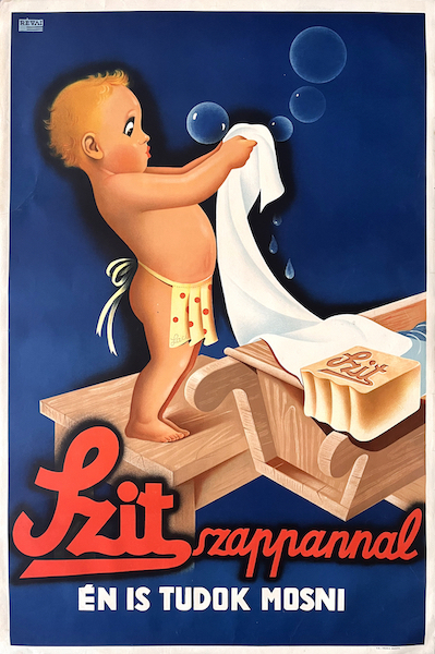 With SZIT soap even I can do the laundry is a Hungarian art deco vintage advertising poster designed by Jozsef Bottlik.