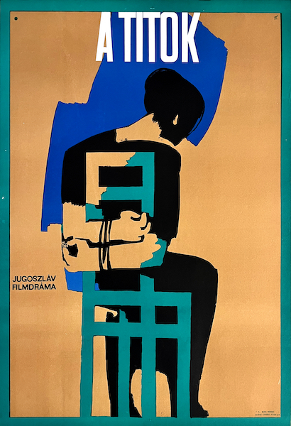 The Secret is a 1967 vintage Hungrian movie poster advertising a Yugoslavian film drama from the 1960s. Gunda created an expressive composition with a reduced, yet decorative colour scale.