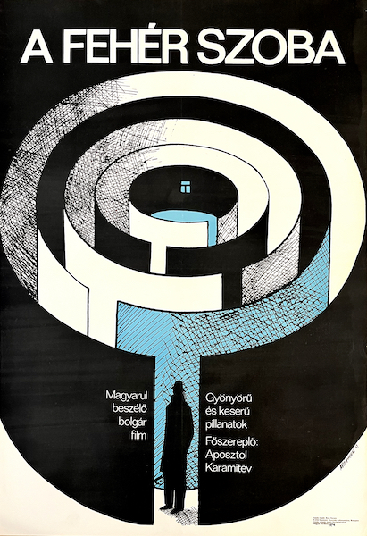 The White room is a 1969 Hungarian vintage movie poster designed by Andras Mate.