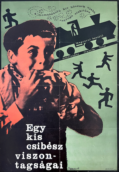Bebert and the Train is a 1965 Hungarian vintage movie poster designed by Ferenc Toreky.