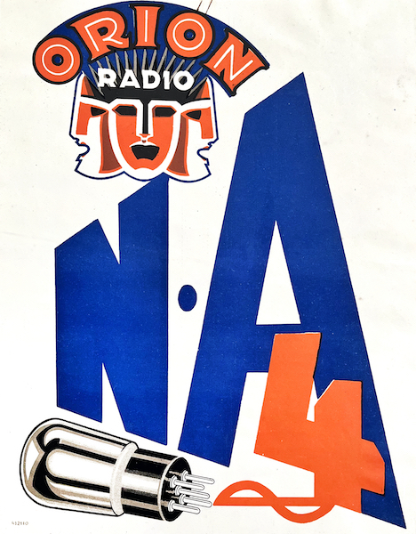 Orion Radio NA4 electron tube is a Hungarian vintage modernist poster from around 1930.