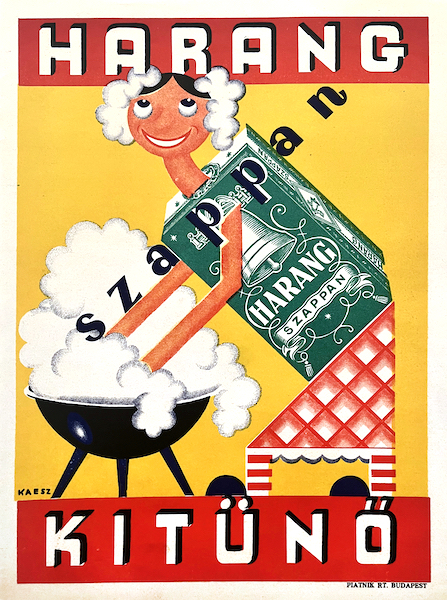 Harang soap is excellent is a 1929 vintage Hungarian modernist art deco advertising poster designed by Gyula Kaesz.