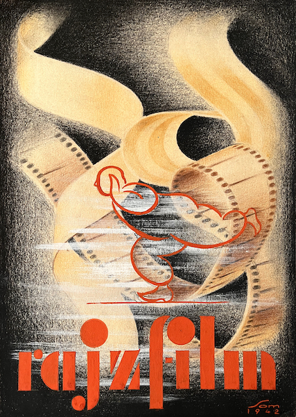 Cartoon is a 1942 Hungarian vintage original Art Deco poster maquette by Som.